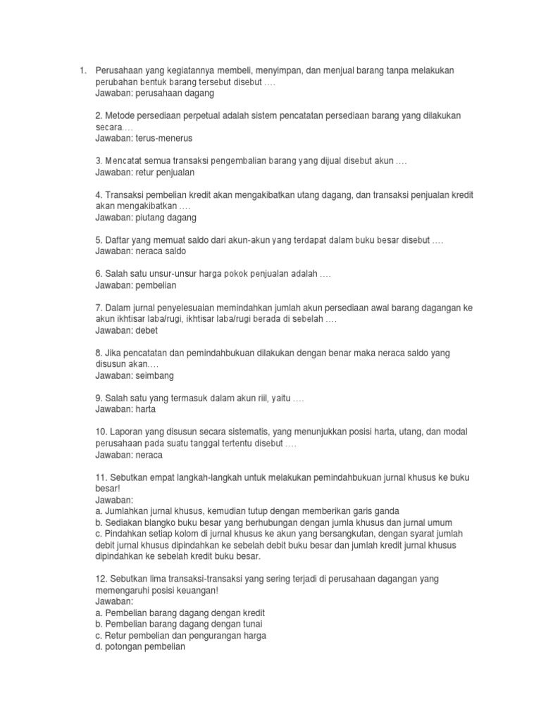 Maybe you would like to learn more about one of these? Soal pilihan ganda tentang jurnal kusus perusahaan dagang kelas xi beserta jawabannya. We did not find results for: Check spelling or type a new query.